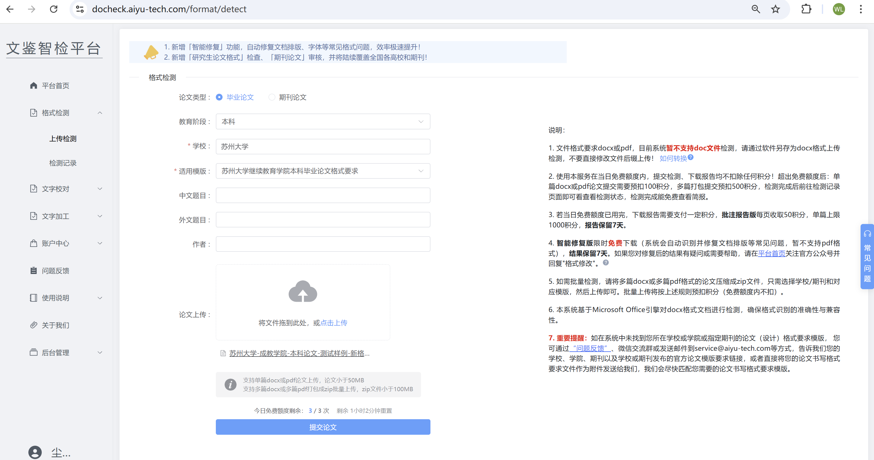 文鉴智检平台的格式智能一键修复功能使用指南